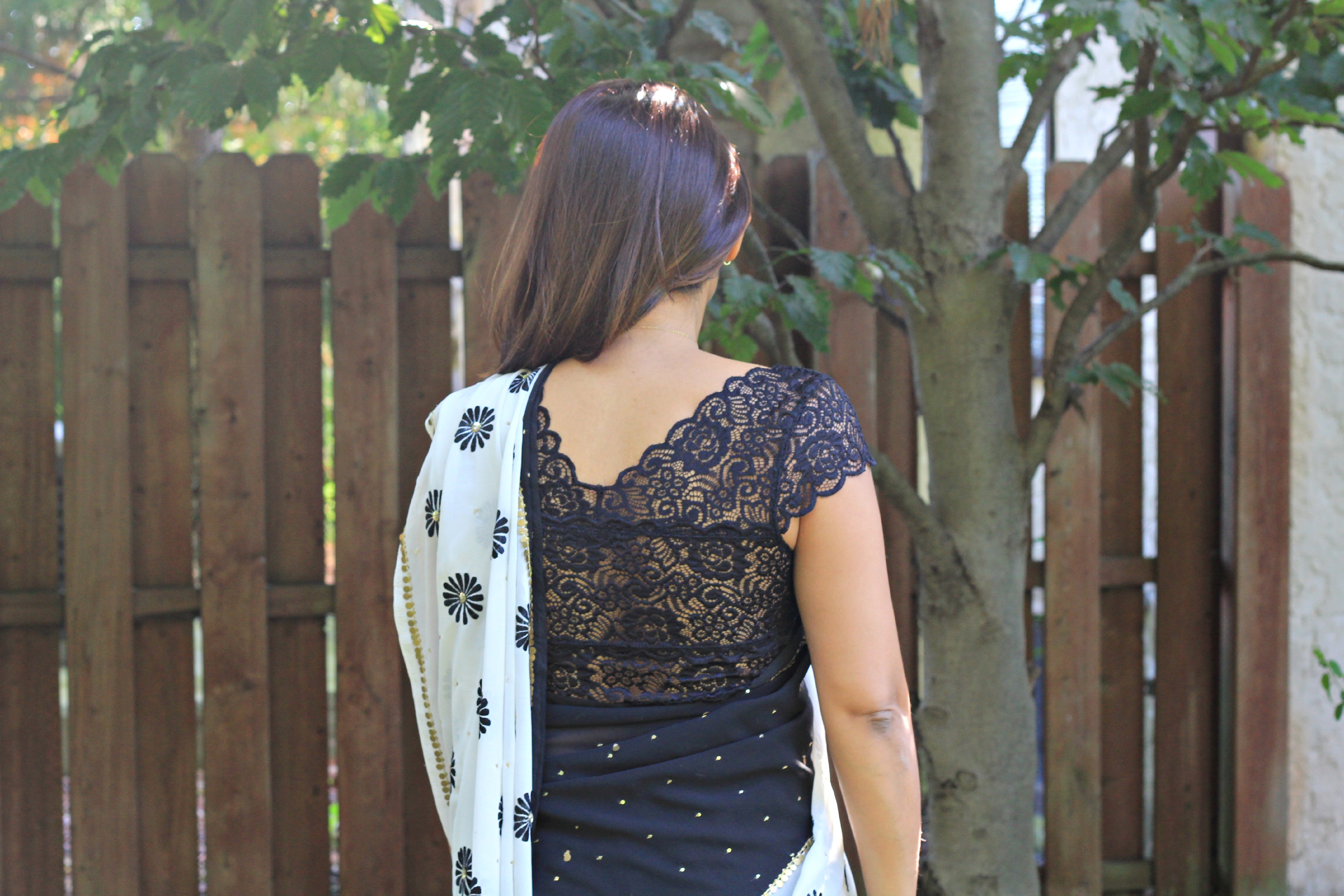 Ever get invited to those “black and white” themed parties, especially where you have to wear Indian attire?? Granted the three of us love themed parties, putting the perfect outfit together is always a challenge. Recently, Nina was invited to such an event and she found this retro, yet simple, sari in Mommy Vaid’s closet. Being that the blouse was 1. over-sized and 2. uhm, not her style, she decided to hunt for something that would make the sari a little more edgy for the event. Low and behold, enter the lace crop top (you are surely aware of our obsession with lace by now from this and this). She found this crop top in Macy’s and paired it nicely with this sari and voi-la, her black and white outfit was ready to go! Check out your local department stores right now as lots of these summer styles are on end of the season sales and you will surely find some steals to change up your existing looks!