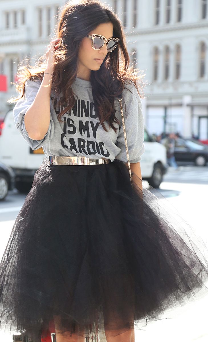 This is Dipti‘s look for the holidays this year! She has been obsessing over tulle lately and finally decided to take the plunge and get herself a black tulle skirt. The best thing about the skirt is that you can wear it super fancy like this dress with a lace top and some heels, or you can go casual with sneakers!